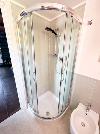 Bathroom - Sink, shower box, toilet, bidet, hairdryer, storage drawers